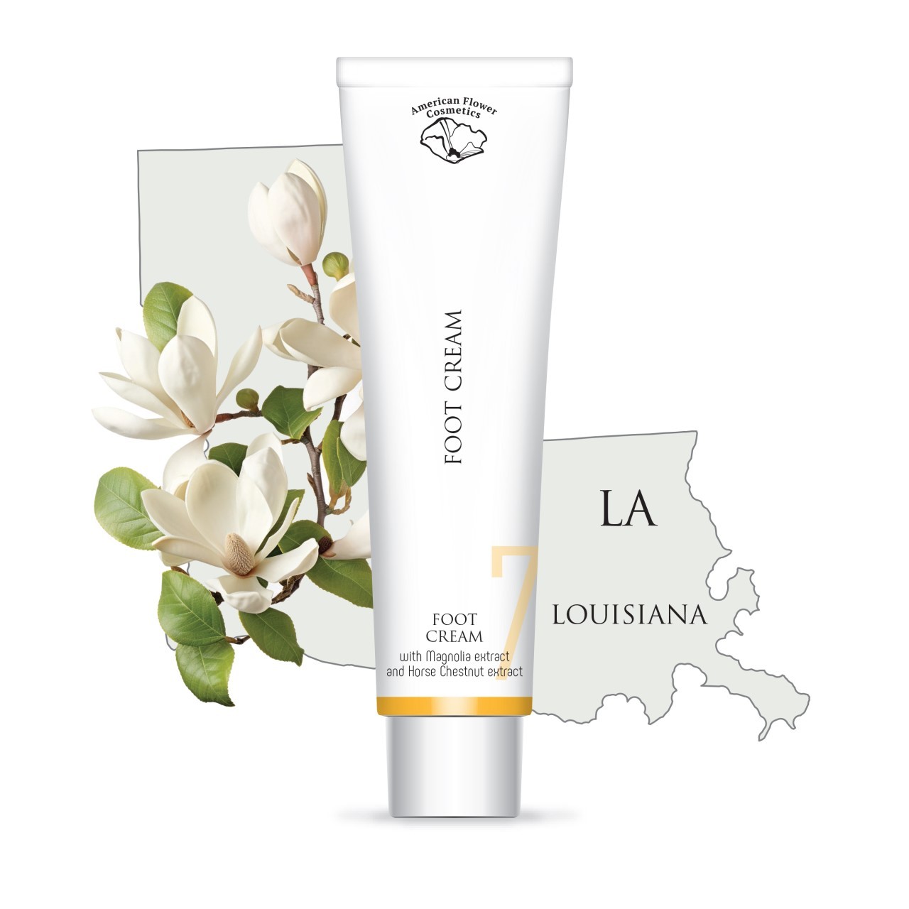 Discover the soothing properties of our Foot Cream with Magnolia and Horse Chestnut Extracts. Inspired by the Snow White Magnolia, a symbol of sunny Louisiana, this cream offers antifungal and anti-allergenic benefits, coupled with a sweet summery scent. The cream’s Horse Chestnut Extract supports lymphatic drainage, combating fatigued and swollen feet, while Hemp Seed Oil treats dry or damaged skin. Lavender essential oil adds a calming aromatherapy element, making this foot cream your ultimate solution for holistic foot care.